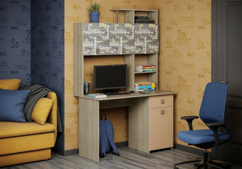 Рабочий стол (ШхГхВ): 120 х 57.8 х 75 см.; Надстройка (ШхГхВ): 120 х 22 х 107.6 см.; Тумба с выдвижным ящиком (ШхГхВ): 40 х 44.2 х 75 см.
